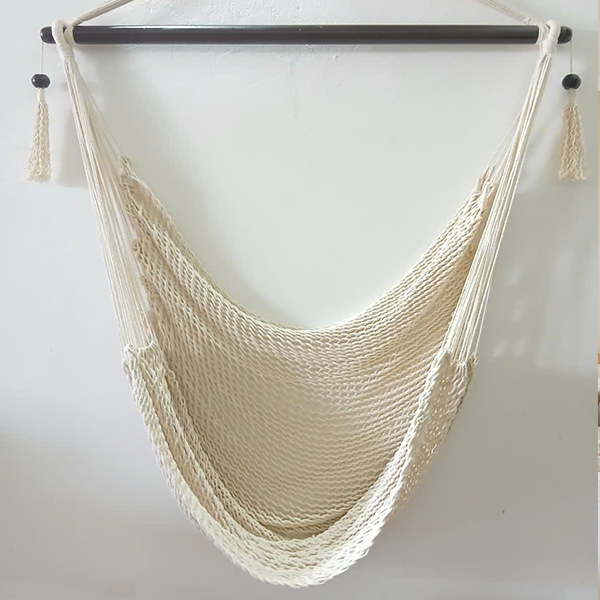 Thổi làn gió nghệ thuật boho vào không gian sống của bạn với võng macrame thủ công. Sản phẩm được đan từ sợi cotton tự nhiên, mang đến cảm giác êm ái, chắc chắn và an toàn khi sử dụng.
